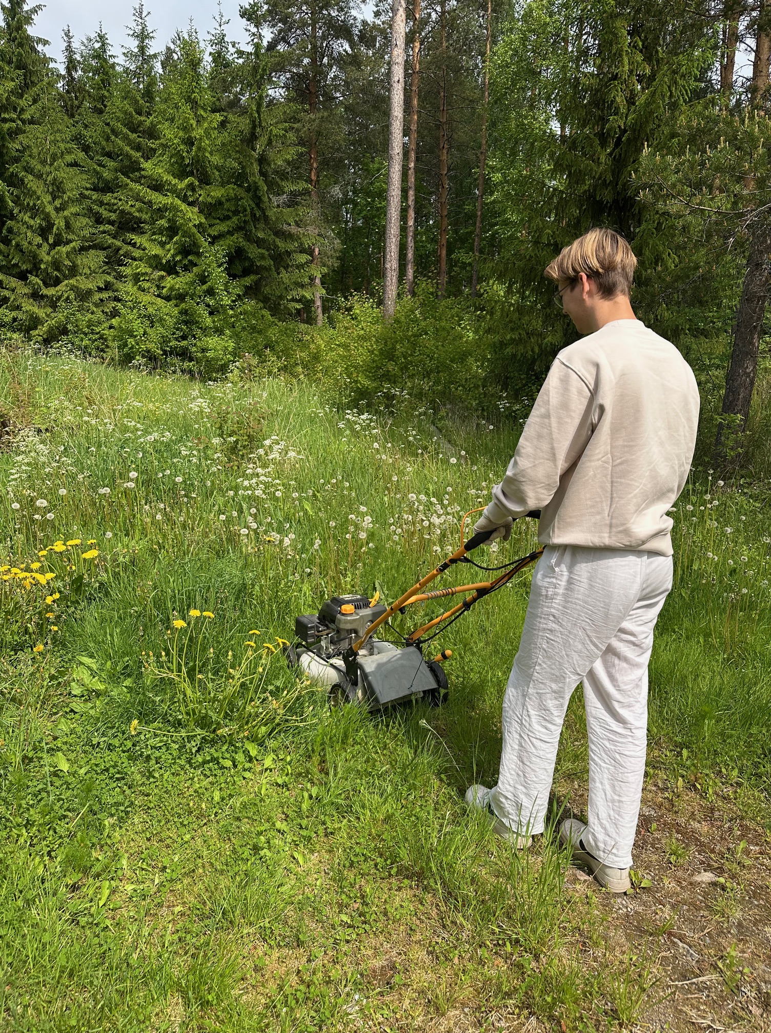 Tarjoan apua arjen askareisiin niin sisällä kuin ulkona – esimerkiksi nurmikonleikkuuta, polttopuiden tekoa ja pieniä korjaustöitä.